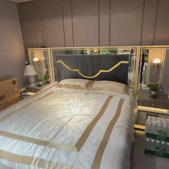 Luxury Brown & Gold Mirror Bedroom Set – Modern Glamour Redefined